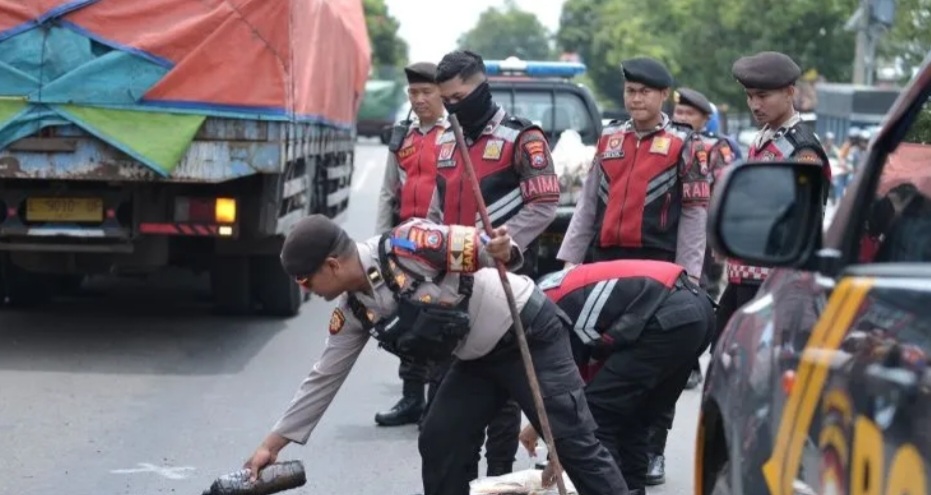 Satsamapta Polres Situbondo tambal jalan berlubang