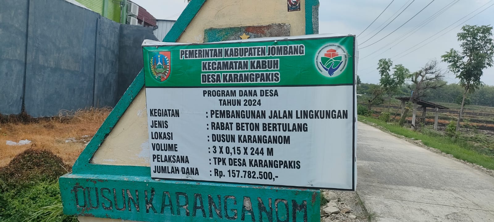 Jombang, Memopagi.com – Diduga dikerjakan tidak sesuai spek, proyek pembangunan jalan rabat beton yang berada di Dusun Karanganom Desa Karangpakis Kecamatan Kabuh
