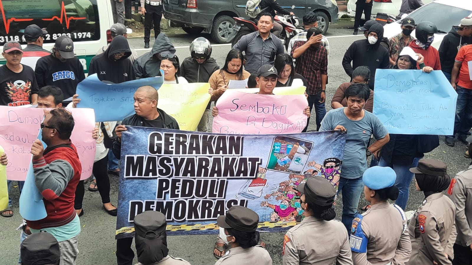 Blitar-Memopagi.com Gerakan Masyarakat Peduli Demokrasi Kota Blitar menggelar aksi unjuk rasa di depan kantor Badan Pengawas Pemilu (Bawaslu) Kota Blitar pada Sabtu,